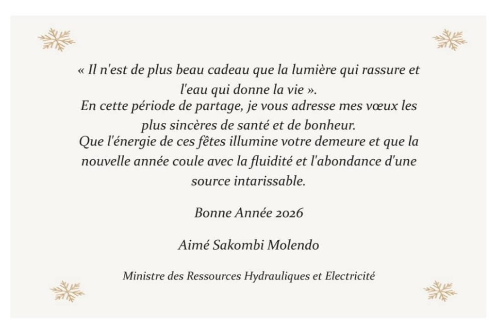 Meilleurs vœux 2026 du Ministère des Ressources Hydrauliques et de l’Électricité. Publié le : décembre 28, 2025